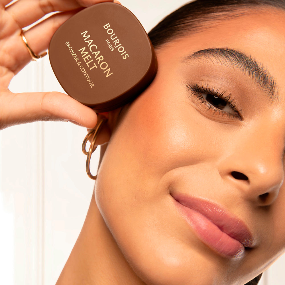 Aussi irrésistible qu’un macaron fraîchement sorti du four, Macaron Melt est un bronzer & contour à la texture crème-poudre fondante et au fini mat flouté.